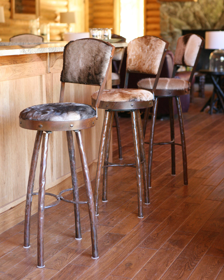 As Shown: Rust patina finish and cow hair on hide (extra charge).